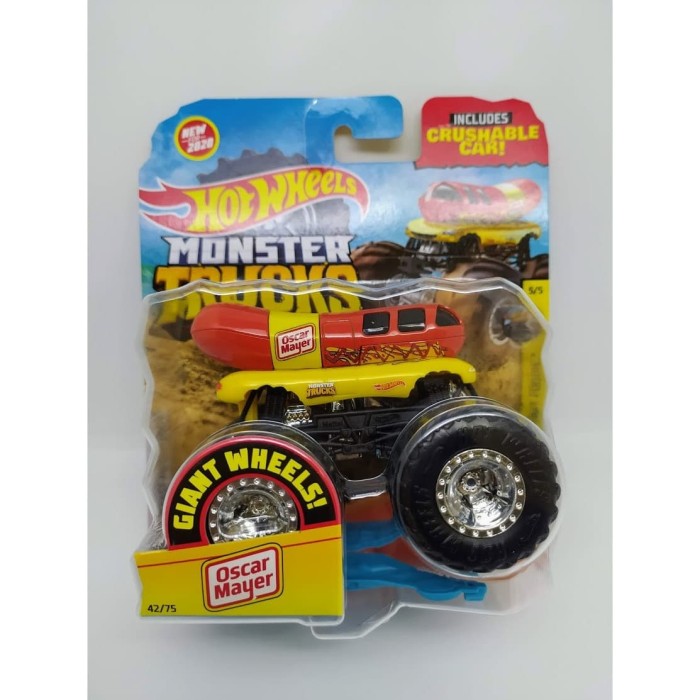 Amazon Com Hot Wheels Monster Trucks 2020 Giant Wheels 1 64 Scale Oscar Mayer With Crushable Car Toys Games