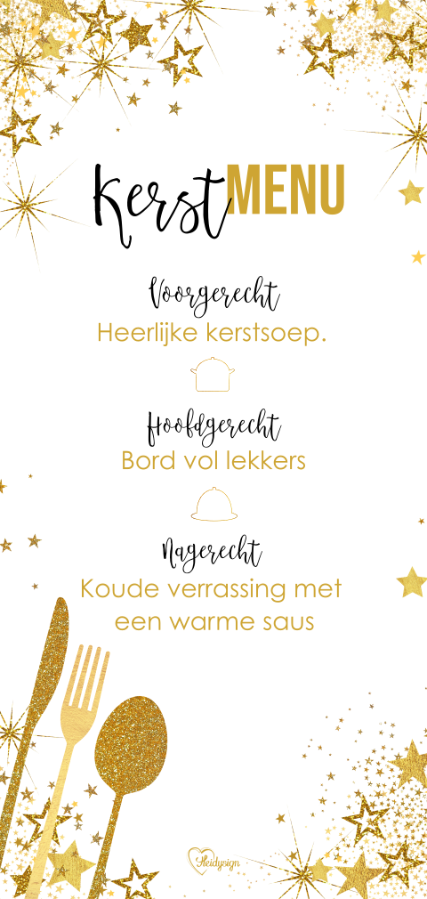 Moderne kerst menukaart goud bestek en sterren | Kaartje2go