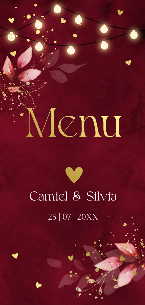 Menukaart huwelijk kerst rood lampjes
