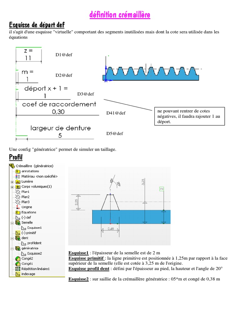 définition crémaillère: Esquisse de départ def
